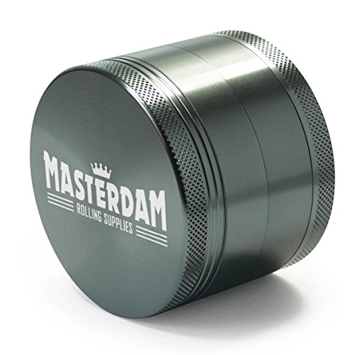 Masterdam Grinders 4-Piece Anodized Aluminum Herb Grinder with Pollen Catcher - Large 2.5-Inch Gunmetal