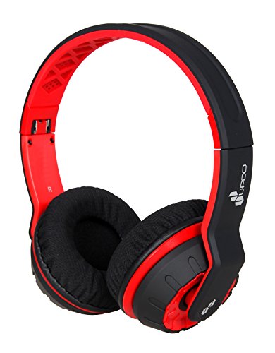 UPDO Rubato Series UD100-BT-RE Folderable Wireless Bluetooth Headphones Over Ear with Classic Adjustable Headsets - Red Color (Red)