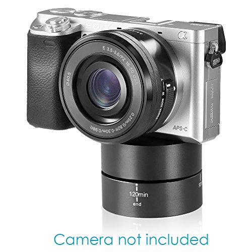The time-lapse can help you create panning time-lapse videos or panoramic images with your ultra compact digital camera. Capture up to 360 degree/120mins of pictures or video with the time-lapse. This time-lapse design includes new metal components to attach cameras and tripods too, ensuring a long product life, and comes in a professional black color.