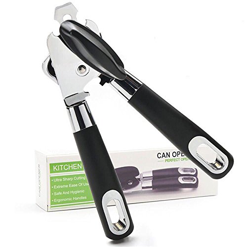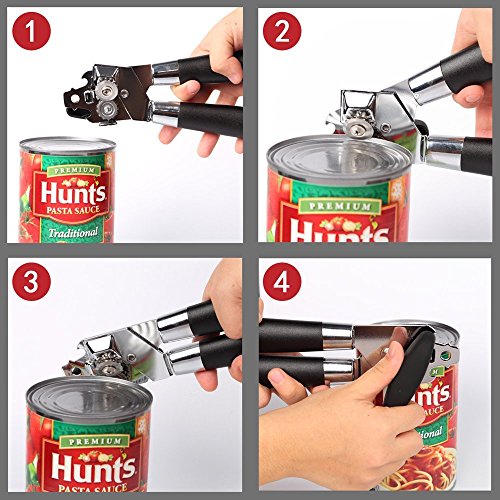 Can Opener,Heavy Duty Stainless Steel Blades FDA Approved, Built in Bottle Opener with Easy Turn Knob and Ergonomic Handles