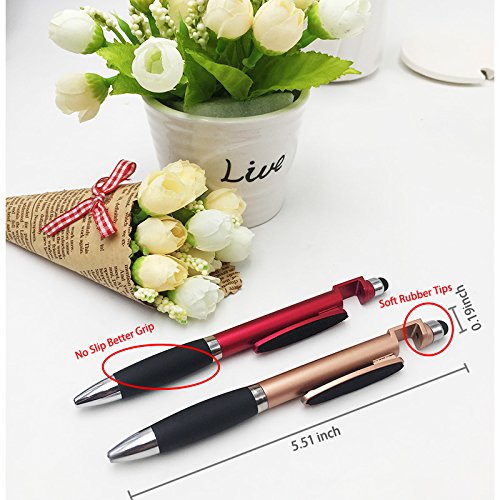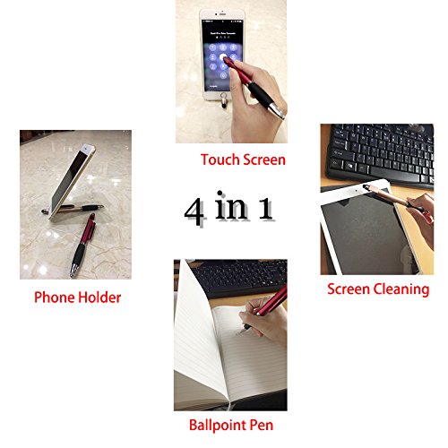 -. Feature : Can your pen do these? Stand your phone or tablet! Work sensitively on your touch screen device! Smooth writing! 4 in 1 stylus pen can do these, this pen one side is black ink Ballpoint pen, other side is capacitive stylus, also can use as a phone stand holder / 100% Compatible with all capacitive touch screens devices such as tablets, iPad, iPhone, iPod, Samsung Galaxy s7 s6 edge s5 s4 s3, LG, HTC, Google Nexus, Android phone and smartphones, etc. / Soft rubber tipped end with sensitive touching helps reduce scratch screen,stylus clips to your pocket or case for added convenience. / GREAT for GIFTS: It is a good choice as gifts for family, friends, coworkers, Christmas stocking stuffer.