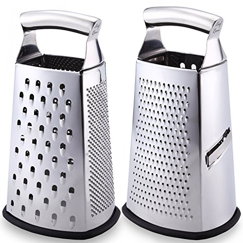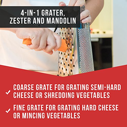 Latest Box Grater - Lifetime Replacement Warranty - Rated No.1 Stainless Steel Food Grater for Hard & Soft Cheese, Vegetables, Ginger, Zesting Lemon, Orange, Nuts - Time Saving Tool For Everyday Cooks