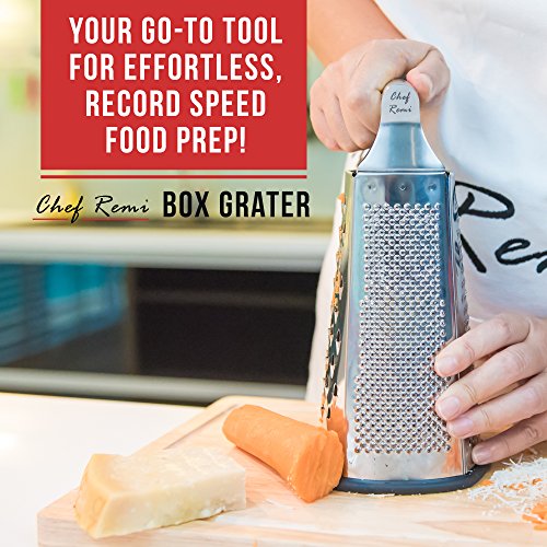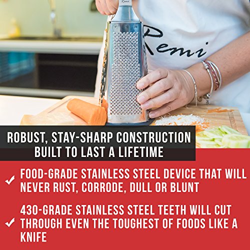 LIFETIME GUARANTEE - The Chef Remi Stainless Steel Box Grater comes with a 100% Money Back Lifetime Guarantee. You won't get this lifetime guarantee from other big brands. Try It RISK FREE Today!