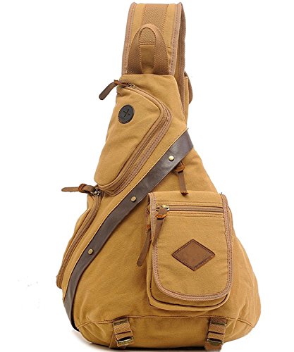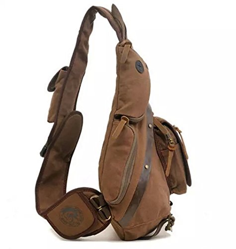 -. Title : FanGoods High Density Thick Canvas Chest Pack Men Crossbody Sling Bag with Leather Deco