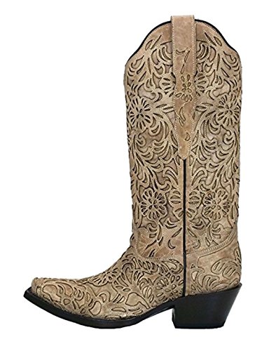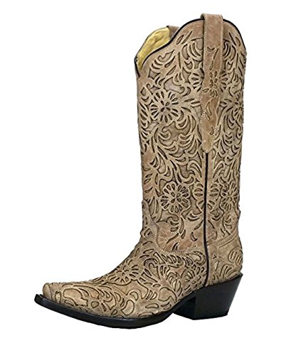 Binding : Apparel Product Description Classic chic boots have arrived just in time for spring! This genuine leather western boot features a snip toe and beautiful laser cut floral design. We love these styled with everyday looks including jeans and dresses or maybe for your bridal party! However these boots are styled they will be a timeless style you can enjoy for many years. Please note that if you are ordering boots, the leather process and distressing is normal. Each boot is hand stitched and is individually unique. All our boots have been thoroughly inspected for true "defects" by the manufacture and our staff at Classy Crossroads. If you have questions about any pair of boots please contact our stylists for additional information. 0