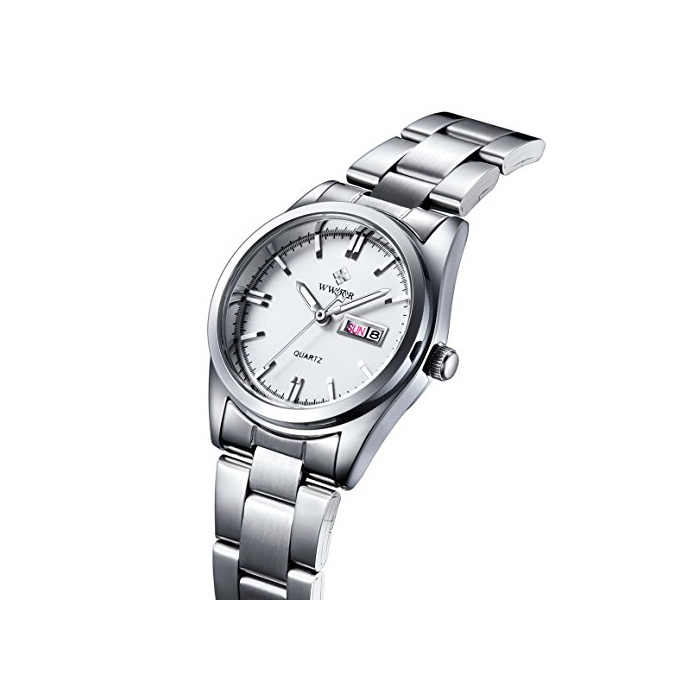 원본상품명: WWOOR 腕時計 ファッション 曜日と日付表示 薄型 ビジネス クォツ時計 夜光 防水 女性 白色