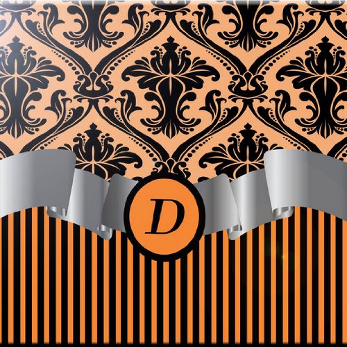 Rikki Knight RK-12intilec-2079 12" X 12" Letter "D" Orange Damask Stripes Monogrammed Design Ceramic Art Tile
