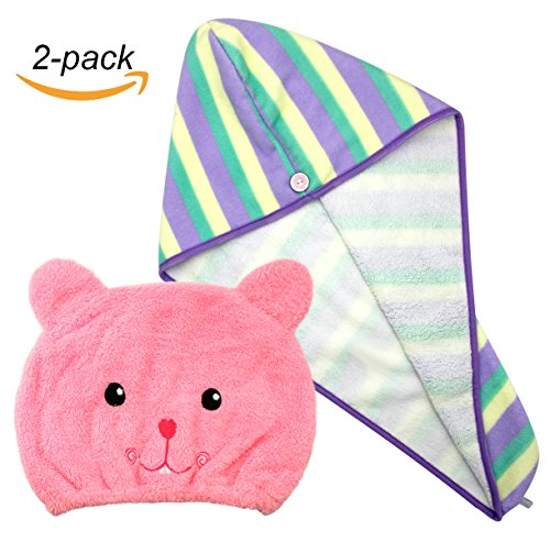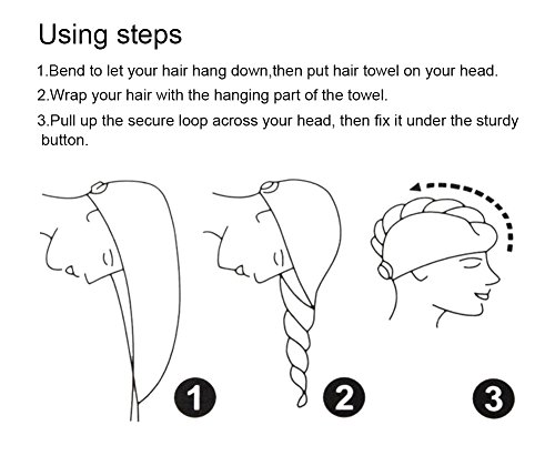 Features: -Dries hair faster to save your time and cut down on hair-damaging blow drying. -No matter what length or type of hair you have,your new luxury turban will magically suck up the water from your wet hair to give you faster drying. - It's super soft,thick and fluffy. -Towel size: 11.02*25.6 inches(adult),9.45*11.02(children).One size fits most women and childrens. -Package includes 2 towels,it protects you and your child's hair.