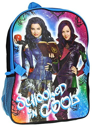 -. Brand : Disney -. Color : Black -. Department : girls -. EAN : 0693186416781 -. Feature : Large size backpack dimensions approx 16"H x 12"W x 5"D / Features zipper closure, side pockets and adjustable shoulder straps / Black and blue in color / Suitable for children ages 3 and up / Officially licensed Disney Descendants kids back pack -. PackageQuantity : 1 -. ProductGroup : Apparel -. ProductTypeName : LAGE -. Size : 16" -. Title : Disney Descendants 16" Backpack -. UPC : 693186416781