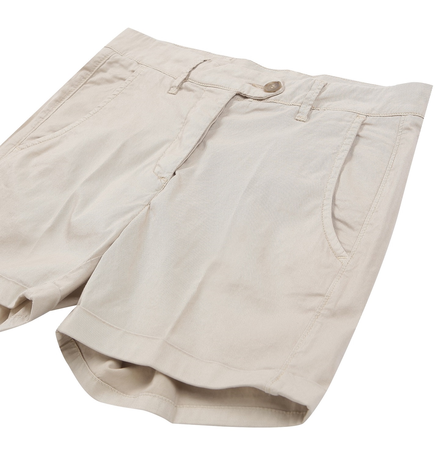 - 사이드 포켓이 있으며, 밑단은 롤업되어 있습니다.