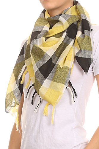 Binding : Apparel Product Description Inspired by the classic pashmina, this square scarf comes in a gingham small check pattern or a larger buffalo plaid. Designed with updated modern colors for today's fashion trends, in a lightweight fabric for year round wear, but especially suited for Spring, Summer or Fall. Fringe tassels on two sides of the scarf for added flair. This fashion neckwear for women or men is ideal for traveling, especially as an adidtional layer on cold airplanes. This tartan scarf is sized to offer versatility without weighing you down. Stock up today. Selling fashion accessories since 1980, you can buy with confidence. If you have any concerns with this item, please contact us at Accessory Necessary on Amazon right away so that we can figure out a way to make you happy. Please note, colors may appear different than on screen due to screen monitor settings and dye lots. What are you luxing for? NYC seller 0