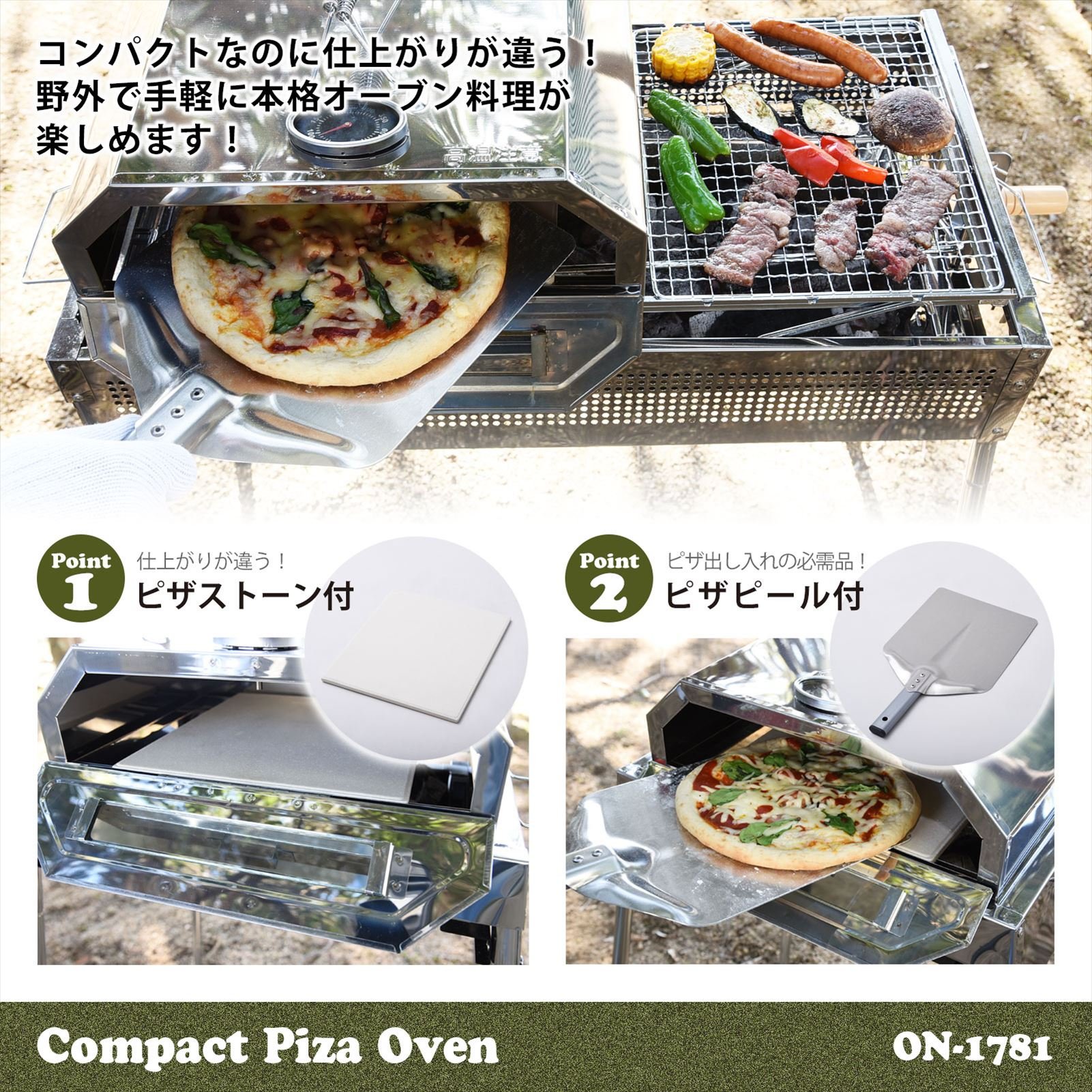Although it is compact, it comes with pizza stone and its finish is different! You can enjoy authentic oven cuisine easily outdoors.