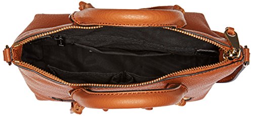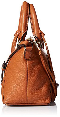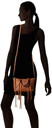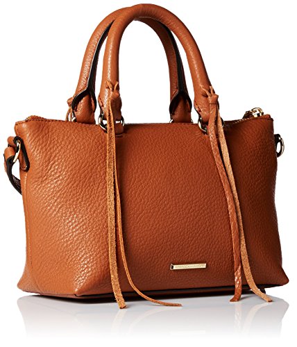 Micro cross-body bag in pebbled finish featuring tassel trims and diagonal zip pockets at front