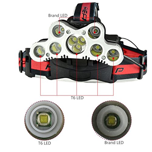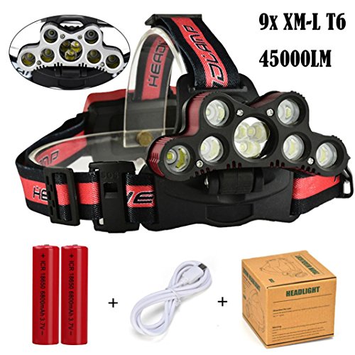 Studio : Tiean Publisher : Tiean Binding : Misc. Product Description Description: XM-L T6 Headlamp Model of LED: 9X XML T6 Output bright can come to max 45000 lumens [lm] Internal wiring applies the high efficient booster circuit, working voltage is wide and can utilize the batteries in the largest extent Waterproofing design(can not be used as scuba light) Adjustable base is provided for each head lamp, with back and forth inclination One button switch : 6 modes Model of Battery required: 2x 18650 3.7v Dimension : 85 x 35 x 47mm