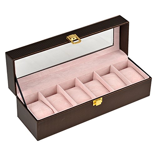ANDREW FAMILY 6 Slot Leather Watch Box Display Case Organizer Glass Jewelry Storage Bronze