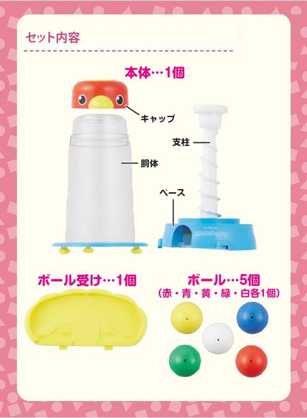 | セット内容 | 本体1個、ボール受け1個、ボール5個(赤・青・黄・緑・白 各1個) |