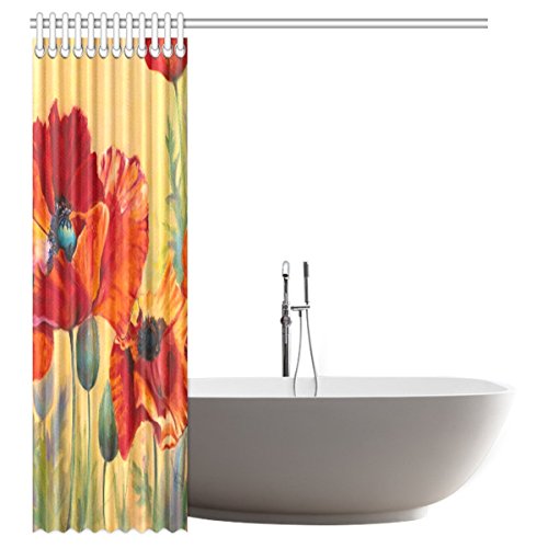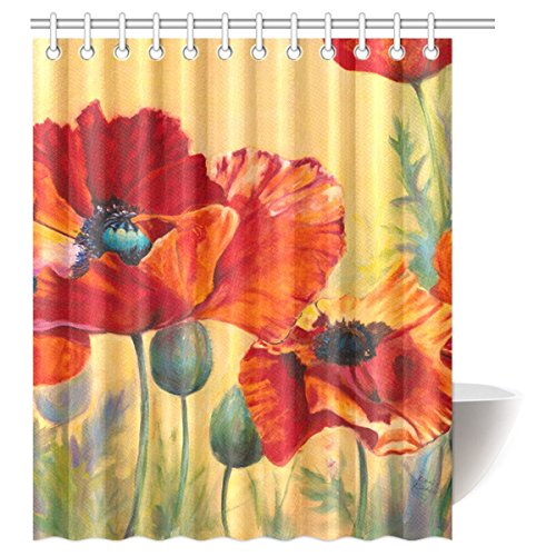 InterestPrint Beautiful Poppy Waterproof Polyester Fabric 60"(w) x 72"(h) Shower Curtain and Hooks