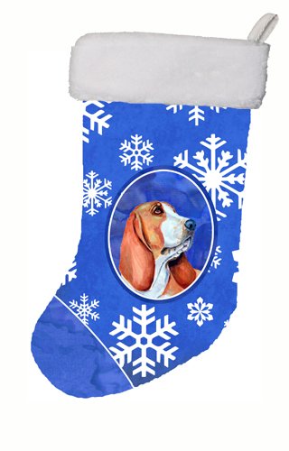 Caroline's Treasures LH9287-CS Basset Hound Winter Snowflakes Holiday Christmas Stocking, 11 x 18", Multicolor