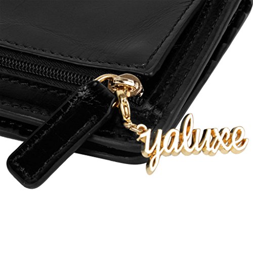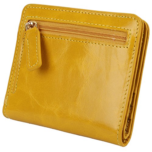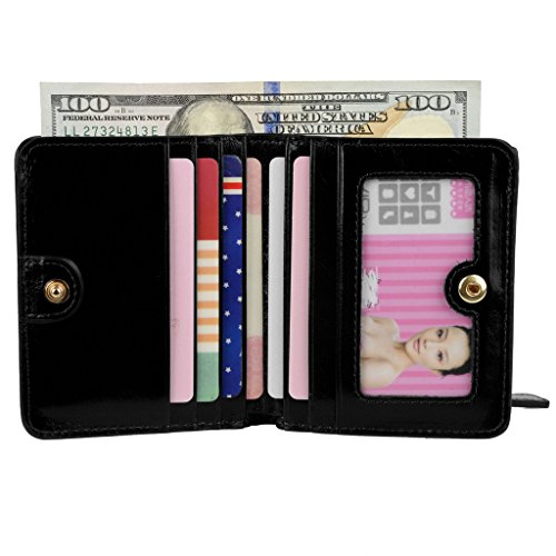 -. Binding : Apparel -. Brand : YALUXE -. Department : womens -. Feature : Oiled Waxed Leather,shiny and luxury looking.Compact Small Slim Wallet,small enough to be in your coat pocket. / 6 card holder; 1 photo slot; 1 coin pocket; 1 bill section. / Large capacity as the bill section can hold up 40 pieces of dollar bills.And the snap stays shut. / Come in a cute Gift Box and ready to be gift for someone who likes compact small wallets / Dimensions: 4.13"(L) x 3.54"(H) x 0.78"(W). -. Model : 11001832-P -. ProductGroup : Apparel -. ProductTypeName : ACCESSORY -. Title : YALUXE Women's Small Compact Bi-fold Leather Pocket Wallet with ID Window
