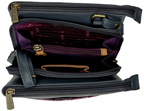 Studio : Anuschka Publisher : Anuschka Binding : Apparel Product Description The accordion-like design allows the bag to expand with ease, while a zipper pocket and phone slip pocket take over the back side. The triple compartment interior really allows you to organize your essentials as you see fit. Zip around entry to the central compartment gives you access to six credit card pockets, an open wall pocket and an inner zippered compartment. Adjustable strap with maximum drop of 26”.comes with a special lining to protect the radio frequency identification (rid) chips in your credit and debit cards from illegal scanning. 7”X8”x 3.75” 0