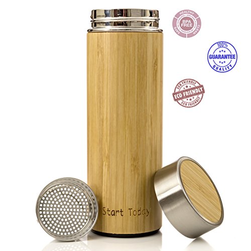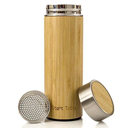 -. Brand : Start Today -. Color : Gold -. EAN : 0795151331430 -. Feature : - COFFEE TRAVEL MUG,SLICK AND COOL LOOKING : The Travel Mug you are about to buy is the most durable and fancy bottle made with 100% natural Bamboo. First thing we believe is your health, these bamboo mugs are made with 18/8 stainless steel and 100% stainless steel material. Buy with confidence, there is no point you will ever complain about it. / - STAINLESS STEEL INFUSER,LEAK FREE : This bottle is designed and engineered outstandingly that you can stop panicking about the leaking drink from today. / - 100% BPA FREE: Our double walled BPA FREE vacuum insulated technology will keep drinks cold for all day and warm for 6 to 8 hours. Believe us: WE PROMISE LITTLE AND DELIVER MORE! Wanna buy this best bottle today? / - STAINLESS STEEL STRAINER THERMOS,100% MONEY BACK GUARANTEED: We deliver best product, and your satisfaction is our first priority. No need to worry, if you are not happy with this product, sest us to improve via email and we are more than happy to return your money right away. / - TEA INFUSER TUMBLER FOR SCHOOL, GYM AND TRAVEL: We believe you are busy with your life doing one of these things. We are here to deliver your demand of all day fresh drink with this amazing quality bottle. -. Label : StartToday. -. Manufacturer : StartToday. -. Model : jaka-1 -. ProductGroup : Kitchen -. ProductTypeName : KITCHEN -. Publisher : StartToday. -. Studio : StartToday. -. Title : Start Today Stainless Steel Strainer Bamboo Travel Mug -. UPC : 795151331430
