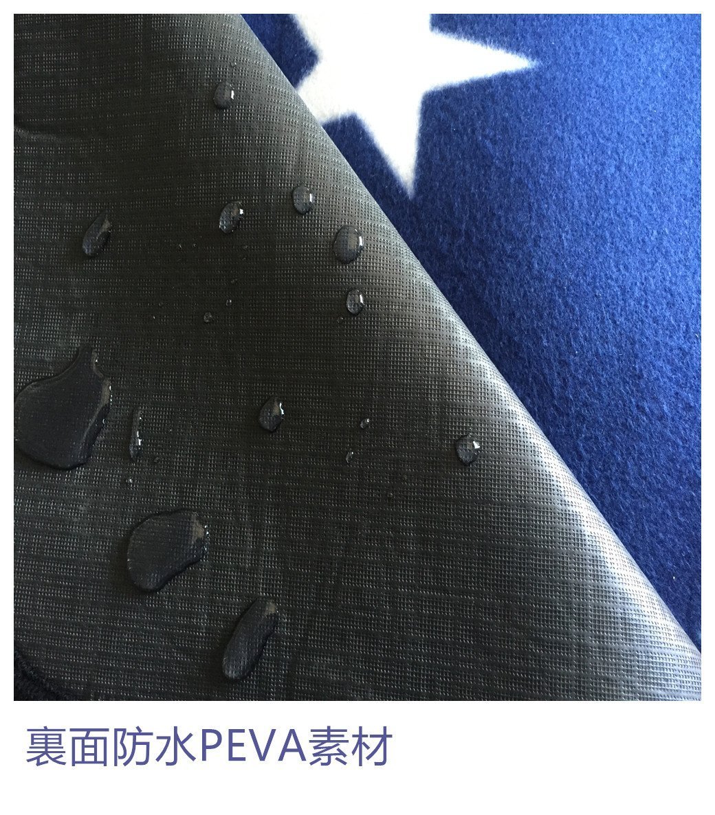 The back side adopts waterproof PEVA material which prevents cold air and moisture.