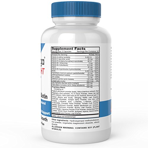 Hairomega DHT Blocker supports hair growth and blocks DHT with 41 ingredients natural herbs & vitamins including 5000 mcg Biotin, Beta-Sitosterol, Saw Palmetto, and Pygeum