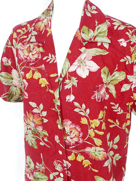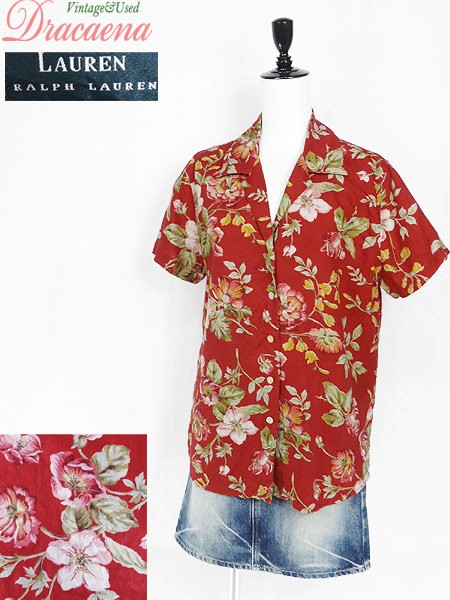 Ladies ブランドLAUREN RalphLauren ローレン ラルフローレン カラー赤ベース メール便可 コンディション★★★ 素材リネン 表記サイズM 実寸サイズ 着丈 67 cm 身幅 51 cm 肩幅 42 cm 袖丈 18 cm ※ウエスト・ヒップ以外は平置き採寸