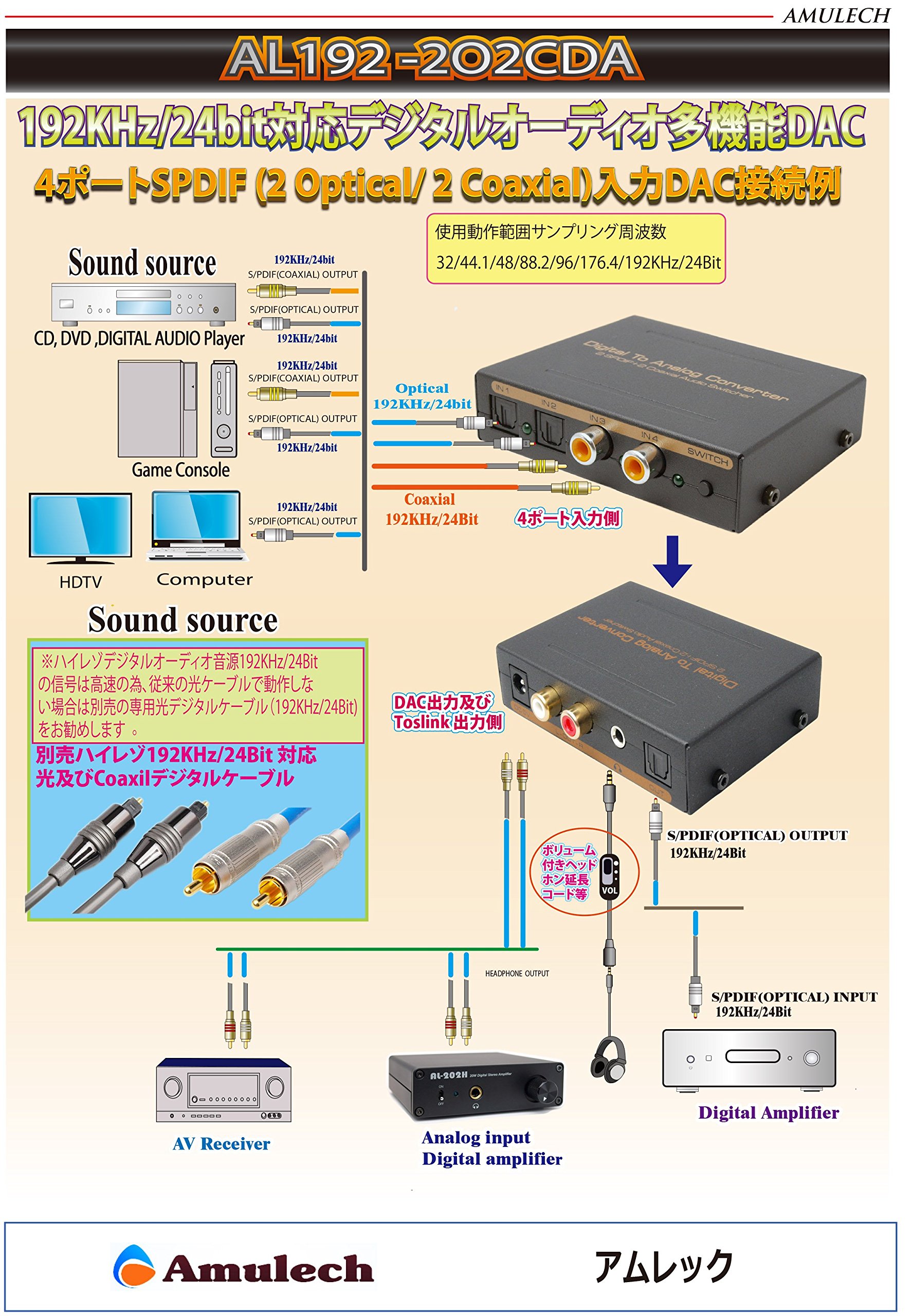 It supports PCM up to 192 kHz / 24 bit, and the sampling frequency supports 32 / 44.1 / 48 / 88.2 / 96 / 176.4 / 192 kHz.