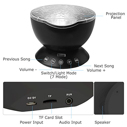 - 7 Light Projection Modes:Red, blue, green, and multicolor color changeable, It’s perfect for creating a watery ocean atmosphere, which can be used in bathrooms, living rooms, baby rooms, parties