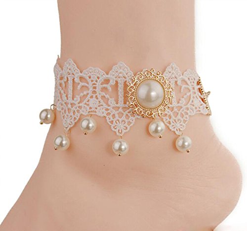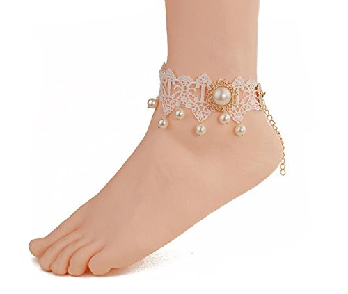 -. Title : 1 PCS Lace Pearl Ankle Ring Bracelet - Wedding Jewelry Ankle Chain Sandal Beach Seaside Foot Ring Feet Accessories(White)