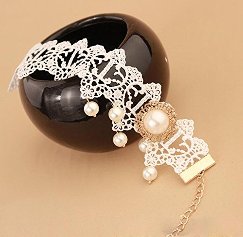 -. Feature : Color:White as photo shown / Material:Zinc alloy + Pearl + Lace / Size:Approx 25.5cm Length ;Package:1PCS / Easily wear or take off.Joker sheet is tasted.Perfect gift for girl and lady! / Suitable for multiple occasions, such as dance, date, daily, etc.
