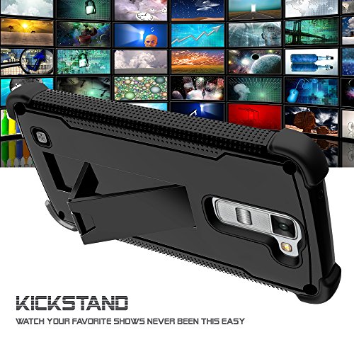 Shockwave Armor Case Design with Tempered Glass You are looking at the Shockwave Armor Case designed to specifically fit the LG K7 (T-Mobile/ Metro-PCS), LG Tribute 5 (Boost Mobile), LG Treasure (Straight Talk / Trachoma) *****NOTE***** This case WILL NOT fit any other LG handheld devices. Design: The case itself will fit snugly onto your phone, with all features of your phone still accessible, and fun actionable. This hybrid Armor case comes in 2 layers; the interior is made up of silicone skin gel, while the exterior is made up of hard polycarbonate (PC) plastic. Built along the hard polycarbonate plastic is the kickstand, which, when not in use, can be pushed back into the case. What you get: Look great and feel great with this premium protector! This case is designed to offer you offer you quality protection for your expensive device while leaving all the unnecessary bulk behind. A built-in kickstand offers you more convenience when viewing media on your device. Included with this combo set is a belt clip carrying holster designed specifically for use with the Armor case. Combined with the clear screen protector film, this Armor case combo set will offer your device the ultimate protection! Protecting your phone has never been this easier! Design -- The case itself will fit snugly onto your phone, with all features of your phone still accessible, and fun actionable. This hybrid Armor case comes in 2 layers; the interior is made up of silicone skin gel, while the exterior is made up of hard polycarbonate (PC) plastic. Built along the hard polycarbonate plastic is the kickstand, which, when not in use, can be pushed back into the case. Package includes: + Shockwave Armor Case. + Armor case with built-in kickstand. + Clear, anti-fingerprint screen protector film.Feature