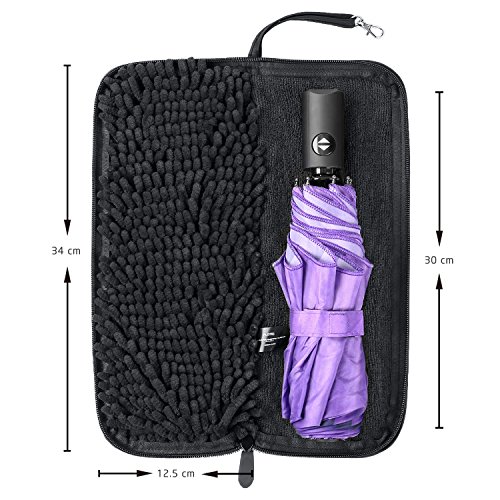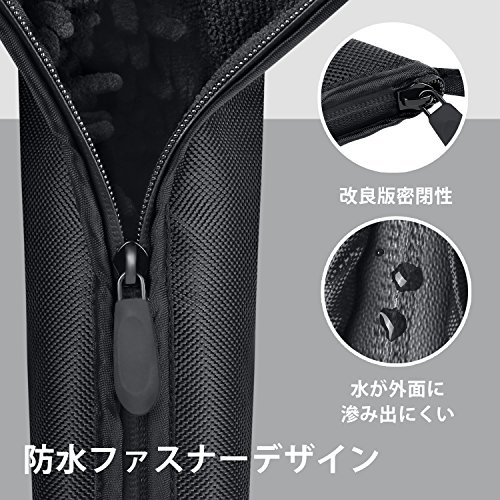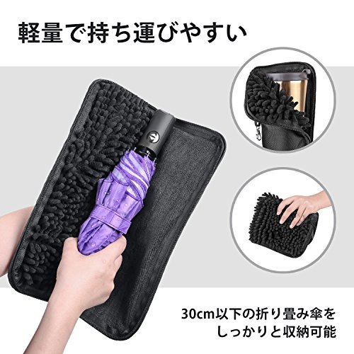 -. Feature : 【抜群な吸水性】ケースの内側はやわらかいシェニール糸とマイクロファイバーで抜群の吸水性を誇ります。濡れた傘の水分をさっと吸収します。 / 【防水ファスナーと表面撥水性】外側の高密度のオックスフォード生地は撥水性が高く、防水ファスナーが採用されるので、吸収した水分は外側に滲み出にくいです。 / 【多用途に使える】服やかばんの中に濡らさずに傘を収納することだけではなく、ケースの生地を裏返して、吸水性を活用して車や窓などの濡れた所を拭くこともできます。また外部のサイドポケットには小物を収納することができます。 / 【安心収納】折りたたみ傘が濡れたまま収まる超吸水傘ケース。屋内に入る時、公共交通機関に乗る時、バッグの中に入れておけば大変便利です! / 【軽量でコンパクト】 34cm×12.5cm、重量180gで30cm以下の折り畳み傘をしっかりと収納することができます。