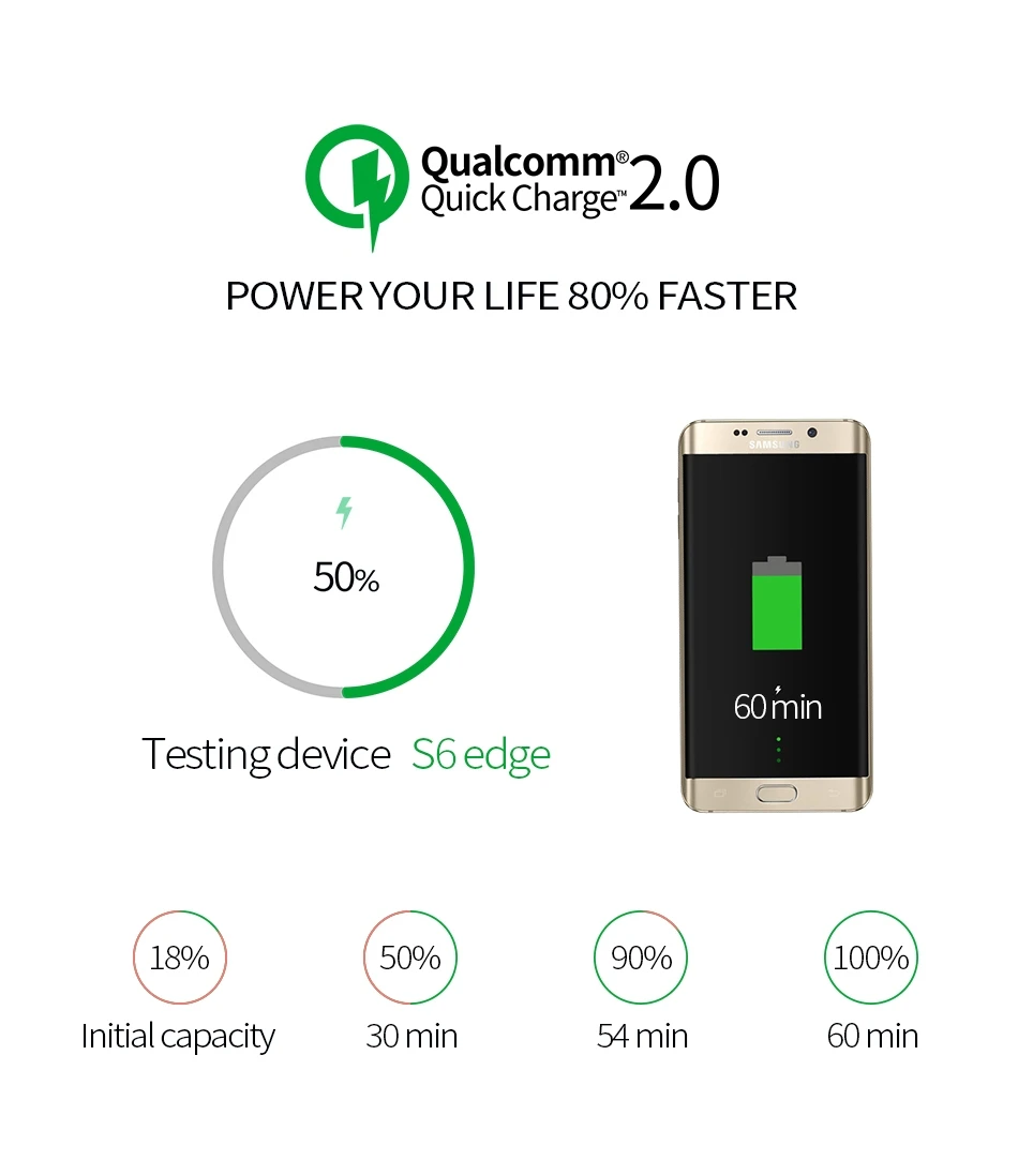 Support Quick Charge Technology:Samsung Adaptive Fast Charge,Qualcomm Quick Charge 2.0