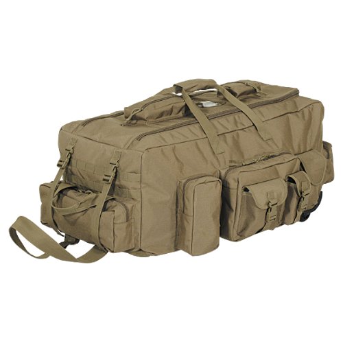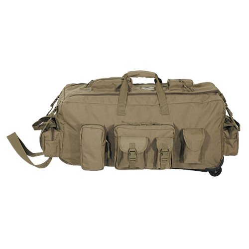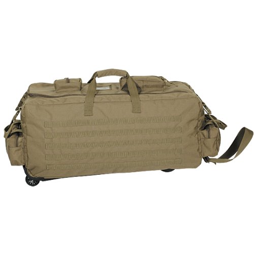 -. Feature : Made of 1000D Cordura / Red skate wheels / Plywood bottom riveted to the bag / Large bag with many pockets / Measures: 32"L x 20"W x 19"H