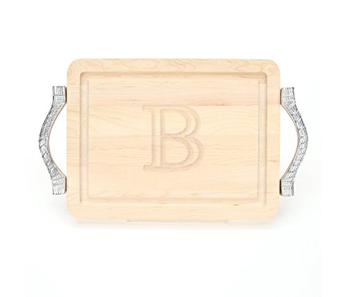 BigWood Boards 200-RP-B Cutting Board with Handles, Monogrammed Cutting Board, Small Rectangular Cheese Board, Maple Wood Serving Tray, "B"