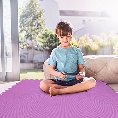 Our interlocking foam tiles are made from premium EVA foam, durable, non-skid textured tiles protect floors, 100% non-toxic material, apply to exercise rooms, gyms, weight rooms, trade shows, martial arts and more. Interlocking feature and lightweight make it very simple to assemble. Moisture resistant technology makes the mat could be easy to wash with soap and water.Its better usage is on the hard floor, suits age for 3 years or older.
