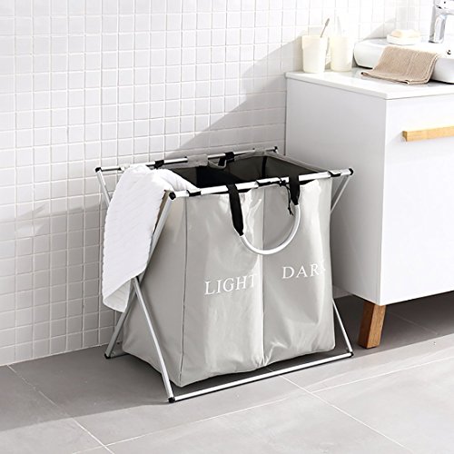 * (Light & Dark):2 Compartments laundry sorter for easy organization; it very easy for you to sort out clothes.The family can help by putting their clothes into the right section.