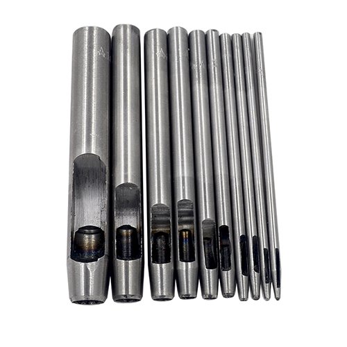 - 0.5mm,1mm,1.5mm,2mm punches could be used to open leather stitching hole,3mm,4mm,5mm punches are normally used to install snaps,4mm,5mm,6mm punches also could be used to make belt hole.8mm,10mm punches could be used to make bags and so on