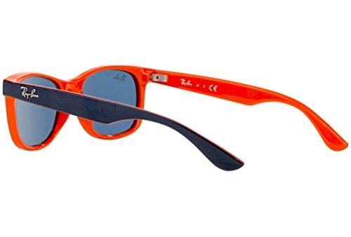 -. Feature : Sunglasses sole Ray-Ban Junior model RJ9052S - 178/80 / Caliber 47 mm. Bridge 15 mm. Rods 125 mm / unisexs Sunglasses / Frame color top blue on orange, lens color blue / Frames material plastic