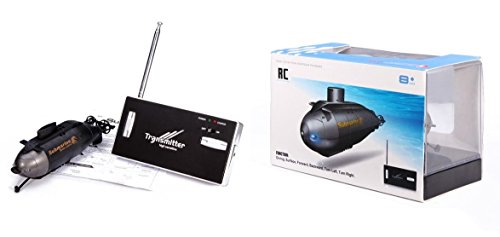 - Feature : Reliable quality guarantees its stable performance. New design idea, novel appearance and exquisite workmanship. Beautiful and classic remote control boat toy. Easy to control as its professional manufacture. Suitable for 8+ children. / A fantastic gift for your kid. It will bring your kid lots of fun. It will be a good companion for your kid. It will give your kid unforgettable memory on special days. / Rotor Dimensions (4.92 x 1.38 x 1.97)" / (12.5 x 3.5 x 5.0)cm / (L x W x H). Weight 8.82 oz / 250 g. Color Black. Material Plastic. Working Time 6 Minutes. Function Diving , Surface , Forward , Backward , Turn Left and Right. Suit Age 6+. / Package Includes: 1 x Submarine 1 x Transmitter 1 x Manual 1 x Antenna / Product From China