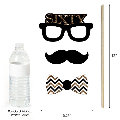 HIGH-QUALITY PARTY SUPPLIES: Adult 60th Birthday - Gold photo booth props are professionally printed on thick cardstock paper. They will arrive cut out and ready to assemble with the included wooden dowel sticks and adhesives. Adult 60th Birthday - Gold photo booth props use a No-Mess Glitter Print: Our photo booth props are designed with a printed image of glitter, eliminating glitter flake while maximizing bling effect!