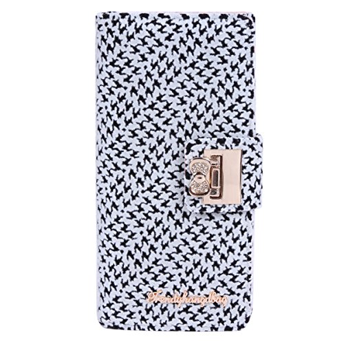 Damara Ladies Fur Surface Gold Bowknot Bifold Wallet Card Case Holder,White