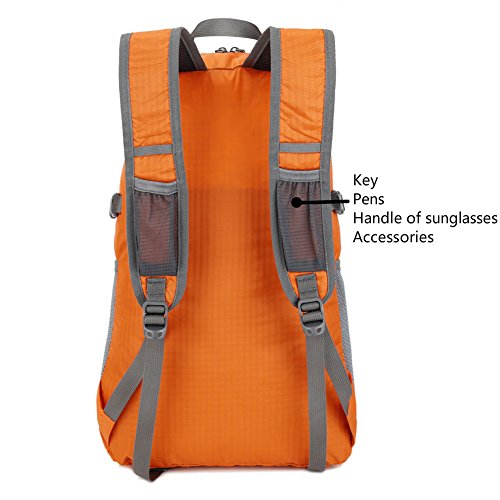 LIGHTWEIGHT(0.7 Pounds) and ROOMY(35 Liters). Greatly save space.Many compartments pockets for storage-avoid extra fees. In addition, there are 2 ELASTIC reticular pockets in both adjustable breathable straps.