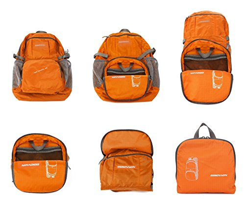 COMPACT. Folds into zippered inner pocket to fit anywhere. Unfolds from pocket to backpack.This backpack is perfect for day-to-day use or occasional travel, and great gift for everyone.Everyone deserves to have a backpack on every trip.
