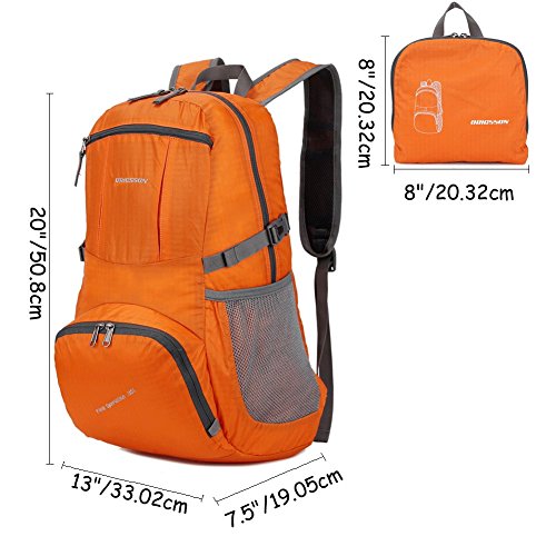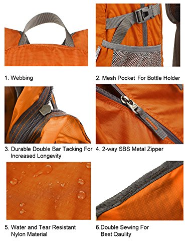 ORICSSON Rate 35L Packable Water Repellent Daypack Tear Resistant Hiking Backpack For Men and Woman Handy Foldable Outdoor Extra Bag (Orange) + Lifetime Warranty