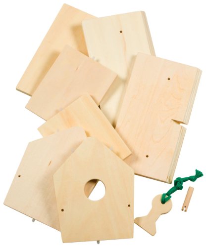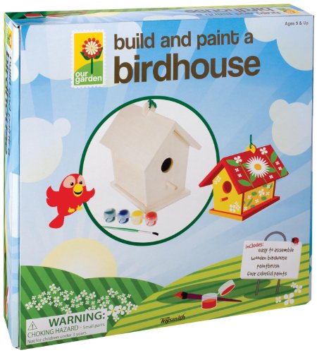 The Toysmith Build and Paint a Birdhouse kit is a fun craft activity for bird lovers of all ages. Build and paint a classic wooden Birdhouse and hang it near a window to watch a colorful procession of birds visit for a meal. The kit includes all the pieces needed to assemble the Birdhouse, plus a brush and set of four (4) paints to decorate the exterior. A cord is included for easy hanging of the Birdhouse. Detailed assembly instructions included. Recommended for ages 5 years and up.