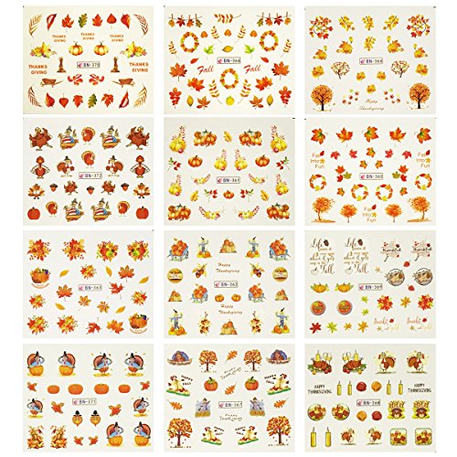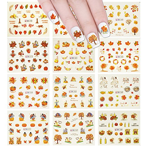 INCLUDES: 11 Sheets of festive Thanksgiving water slide nail art decals