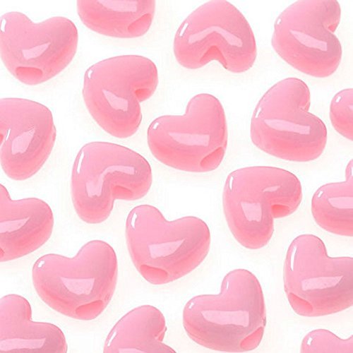 These are opaque pink, acrylic heart pony beads. They measure 11mm. Sold in a pack of 65 pieces. Note: Choking hazard due to small parts. For ages 6 and up.